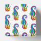 Articulação artificial, brilhante, arco-íris, cavalo de mar poligonal sobre fundo branco. Tatuagem brilhante.