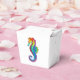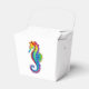 Articulação artificial, brilhante, arco-íris, cavalo de mar poligonal sobre fundo branco. Tatuagem brilhante.