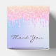 Elegante, clássico, glamouroso e feminino para um 18º favorito da festa de aniversário. Um fundo tenso e arco-íris colorido em cor rosa, roxo, ouro rosa e verde de menta. Com o texto: 18º Aniversário e Obrigado Escreveram com um moderno estilo escrito à mão. Decorado com pingos de brilho sujo, pingando tinta olha em ouro roxo, rosa e rosa. Personalize e adicione um nome e uma data. Texto colorido da cinza.