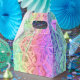 Facetas de pedra preciosa cristalizadas em um gradiente de arco-íris ousado.
