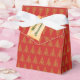 Uma elegante árvore de Natal contemporânea, colorida, é a estrela deste design. Este padrão repetitivo de árvores está sobre um fundo vermelho brilhante, que você pode personalizar com uma cor de sua escolha. O flape da frente tem um cartão de presente que diz, Feliz Natal. Este texto pode ser personalizado com um nome ou outro cartões de natal.