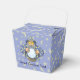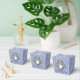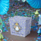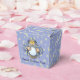 Um velho feiticeiro com capa azul olhando para a bola mágica de cristal.