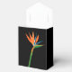 As caixas de favoritos do fechamento de fita estilo tenda preta apresentam pássaro exótico das flores aquáticas do paraíso na frente e seus nomes e um obrigado pessoal que você envia no verso. Convites, pratos, guardanapos e outros itens na nossa loja.