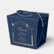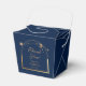 Celestial Blue Sun Moon Astronomy Wedding Favor Boxes apresenta um elegante sol dourado, lua e estrelas com um quadro de ouro sobre fundo azul. Dentro é o seu obrigado personalizado da caixa de favoritos. Projetado pelo Evco Studio www.zazzle.com/store/evcostudio