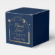 Celestial Blue Sun Moon Astronomy Wedding Favor Boxes apresenta um elegante sol dourado, lua e estrelas com um quadro de ouro sobre fundo azul. Dentro é o seu obrigado de casamento personalizado. Projetado para você pelo Evco Studio www.zazzle.com/store/evcostudio