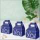 Festa de lacrosse criativa ou evento esportivo em equipe favorece caixas com design de lax em fundo azul.