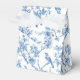 Lindas caixas de favores florais e aves azuis e brancas.