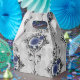 Deslumbrante caixa de favores com padrão de damasco floral vintage em tons de azul marinho e prata.