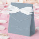 Uma simples caixa de favores moderna em um azul macio e empoeirado que se coordena perfeitamente com a suíte de casamento Watercolor Tropical Beach Palm Trees.