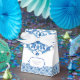 Caixa de casamento de limão mediterrâneo da Costa Amalfi Itália, com azulejos azuis, limão e moldura azul.