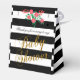 Caixinha De Lembrancinhas Bandas brancas e pretas elegantes com floreal rosa