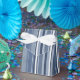 Design azul de tendência apresenta tons de faixas verticais azuis e brancas em uma faixa legal com nossa textura de pincel seco. Desenhos personalizados disponíveis, envie-nos uma mensagem com pedidos.