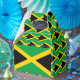 A bandeira jamaicana é uma cruz diagonal se divide em quatro triângulos. As cores usadas na bandeira são verde, amarelo, preto. A proporção da bandeira jamaicana é 1:2. A bandeira da Jamaica foi adotada em 1962.