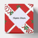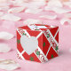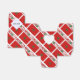 Em uma diagonal, a bandeira marroquina aparece com a palavra MARROCOS, abaixo, nas cores da bandeira. Um espaço branco de quadrados quadrados texturizados guarda um espaço para o seu nome. Crie uma caixa de favoritos personalizada para a reunião da sua família ou uma caixa personalizada para uma boa viagem. A bandeira é vermelha com uma estrela no centro.
