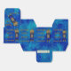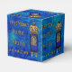 Estas caixas de favor lindamente projetadas para o Bar do seu filho ou Bat Mitzvah apresentam uma pintura digital original de Leslie Sigal Javorek de uma linda Torah adornada em veludo azul e ouro sobre um fundo de mármore azul cobalto. Campo de texto personalizado para nome, data etc.