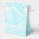 Pequena caixa de favor com uma flor rosa e branca vibrante. Fechar a fotografia desta flor encantadora realmente atrai sua atenção. Uma faixa de cor azul pastel com seu dentro de texto personalizado. O resto da caixa tem uma imagem azul clara de aquarela.