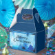 Esta bela caixa de natal mostra flocos de neve brancos caindo de um céu azul mágico. presente de excelente para esta feliz ocasião.