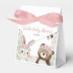 Aprecie seus convidados com esta encantadora caixa de chá de fraldas temerária. Apresentando adoráveis animais de floresta aquarela com coroas florais e tons de blush suaves, é o toque perfeito para uma celebração de menina. O tamanho do petite é ideal para pequenos doces, cestos, ou guardas de coração. Seja exibido na mesa ou entregue como presentes obrigado-você, esta caixa de favoritos adiciona elegância e personalidade à decoração do evento. Projetado para combinar o seu tema de festa boho Woodland lindamente.