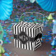 Caixinha De Lembrancinhas Black White Stripe Black Quatrefoil 3 Monograma