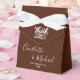Add a personal touch to your wedding favors with these charming Boho Brown Script Minimalist Wedding Favor Boxes. Customized with the names of the bride and groom and the date, these boxes are a thoughtful way to show your appreciation to your guests.