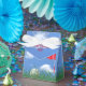 bola de golfe branca com bandeira do campo de golfe e fundo do céu de verão para um evento de golfe