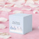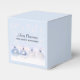 Caixa de favor minúscula, 2 polegadas x 2 polegadas. Projetada com um design mágico de Natal. Decorações da árvore de Natal reunidas em alguma neve branca. O fundo tem um padrão branco de bokeh (luzes desfocadas) com flocos de neve caindo. Captura perfeitamente a maravilha e a magia do Natal.