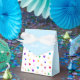 Bolinhas multicolores Obrigado pela caixa de favoritos. Uma bela caixa de favores para todos os tipos de festas. Texto Obrigado Você pode ser personalizado.