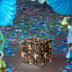 Borboleta Dourada, retrô, chique, borboleta, ouro, borboleta dourada, flores, coral, preto e ouro, brilho, noite, trópicos