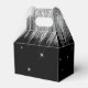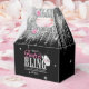 Comece a festa com essas divertidas caixas de lembrancinhas "Disco Despedida de Solteira" em prata brilhante e rosa sobre um fundo preto. A tipografia chamativa "Botas e Brilho", o chapéu de cowgirl cintilante são acentuados por uma borda de franjas prateadas. Adicione seu nome e data do evento usando o modelo fornecido. Procure ID925 para ver outros produtos da coleção da moda.