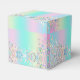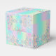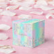 Caixa de Favoritos de Brilho Holográfico de Unicórnio - Uma caixa de favoritos colorida e brilhante na moda com brilho turquesa, rosa e malva e amarelo claro. Você pode personalizar esta caixa de favoritos adicionando seu nome e iniciais para o seu evento especial.