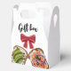Caixa de presente de cumeeira encantadora com arte de torrada gourmet. Ideal para brindes de festa, eventos boutique, brunchs e embalagens de presentes pequenos. Compacta e fácil de montar com uma aparência festiva.