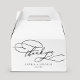 Este obrigado de caligrafia romântico que você me dá o favor de casamento é perfeito para uma simples recepção de casamento. O clássico design moderno apresenta espirais ricos e turbilhões brancos com magnífica e elegante tipografia à mão. Personalize as caixas com seus nomes, o evento (se aplicável) e a data. Estas caixas de favoritos podem ser usadas para uma recepção de casamento, chá de panela ou qualquer evento!