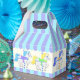 Pôs pintados bonito, design de carrossel favorece a caixa de presentes com listras azuis e roxas e cavalos coloridos.