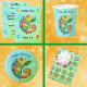 Esta caixa de favor ou presente é uma mistura de blues e verdes molhados com um lagarto de desenho animado divertido segurando uma folha em uma vareta em cores brilhantes de azul, verde, amarelo e laranja. Personalize seu texto no flap superior com o modelo.