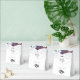 Este design apresenta buquês florais de cor d'água de ameixa e azul marinho, com as palavras "Obrigado" no roteiro de cinza de carvão na aba frontal. Personalize-o com os nomes da noiva e do noivo e a data do casamento na fonte da placa de cinza de carvão.