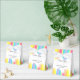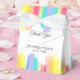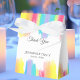 Uma bela caixa de favoritos do casamento arco-íris com bonito traços de tinta artística cheio de cor brilhante. Estes pacotes coloridos de favores são perfeitos para um casal artístico ou um casamento de gay e lésbicas. O design alegre é perfeito para uma cerimônia de verão.