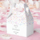 O cotovelo colorido confunde esta caixa de favor na moda personalizada com seus nomes e data especial. Projetado por Thisnotme©