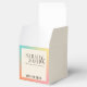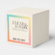 Gradiente de pastel no estilo retrorreflector amarelo-rosa azul, branco elegante e elegante caixa de favoritos personalizados com texto "Obrigados para sua presença". Este produto é facilmente editável. Se precisar de ajuda para a personalização deste produto ou se precisar de mais produtos correspondentes para esta coleção, envie-me gentilmente o Zazzle.