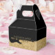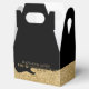 Caixa de favorecimento de guitarra preta e dourada. Personalize acrescentando o nome da noiva e do noivo e a data do aniversário de casamento. Excelente para amantes de música ou guitarristas. Use como caixa de presentes para todos os seus convidados de casamento.