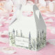 Estas caixas de favor ou tratamento são pacotes perfeitos para favores de casamento para a sua casa de montanha ou casamento temático da floresta. Eles têm um estilo simples, mas elegante, com uma ilustração acentos de uma floresta aquarela de pinheiros altos ou de árvores verdes em tons de verde-sábio, cinza e verde-claro. O estilo aquoso suave tem uma calma tranquila qualidade, que vos lembrará de ver o nevoeiro subir sobre uma taça de madeira. A inscrição clássica e elegante em um verde de sábio escuro que coordena os nomes da noiva e do noivo e a data do casamento.