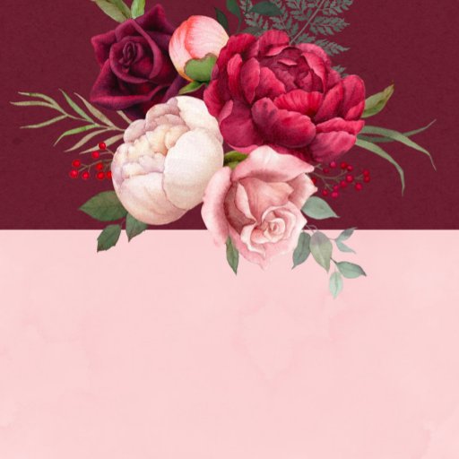 Design apresenta um elemento floral impresso em tons burgundy e cor-de-rosa pincelado sobre folhas de folhagem e rosas e florescências de pénia. Em fundo kraft e watercolor mix. Excelente para as comemorações do casamento!