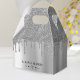 Caixa de favoritos de casamento com brilho prateado. Personalize-o com seu nome e data de aniversário.