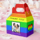 Esta ousada caixa de favoritos de casamento listrado no arco-íris apresenta uma foto romântica do noivado LGBTQ para um casal ou lésbica que ama caixas listradas brilhantes e coloridas. Personalize este presente alegre casal LGBT nas listras vermelha, laranja, amarela, verde, azul e roxa.