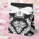 Caixa de favorecimento de cor damasco branca e preta com monograma, com cor damasco clássica e seu monograma em um quadro com borda úmida. Esta caixa de favores moderna, moderna e giro, monogramada, é perfeita para outras ocasiões especiais, como chás de panela, festas de aniversário, chás de fraldas, etc. Você pode personalizá-lo e adicionar iniciais ou outro texto.
