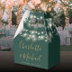 Caixa de favoritos de casamento elegante com luzes bonito de cordas, nomes de guião de ouro chico e data especial em um fundo verde esmeralda. Você pode personalizar com seu próprio obrigado sua mensagem ao contrário. Uma maneira perfeita de dizer obrigado aos seus hóspedes! Projetado por Thisnotme©