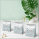 Belo lugar prateado e as caixas de favoritos de casamentos azuis. Você pode mudar ou remover o texto, mudar a cor de fundo e a fita para personalizar esta elegante caixa de favoritos de casamento azul e prata.