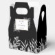 Uma caixa de favoritos de casamento elegante, preto e branco, com folhas de aquarela delicadas, enquadrando o seu obrigado, a mensagem é definida na tipografia moderna. Você pode personalizar com seu próprio obrigado sua mensagem ao contrário. Uma maneira perfeita de dizer obrigado aos seus hóspedes! Projetado por Thisnotme©