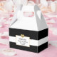 Adorei essas elegantes caixas de favores personalizadas para o seu casamento, presentes em favor do chá de panela! Cor branca e preto clássico. Banner branco por toda a parte. Coração de brilho de folha de ouro para adicionar um toque de classe. Adicione seu texto e personalize-o! Consiga convites e adesivos.