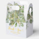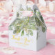 Estas violetas leves e ouro Obrigado As caixas de favoritos do casamento exibem eucalipto verde e folhas verdes e douradas. Para personalização mais avançada deste design, clique no link personalizado.