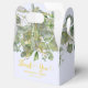 Estes azuis-claros e dourados Obrigado As caixas de favores de casamento apresentam eucalipto verde e folhas verdes e douradas. Para personalização mais avançada deste design, clique no link personalizado.